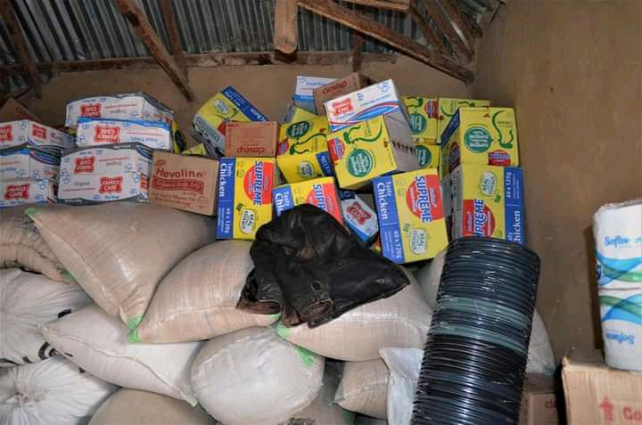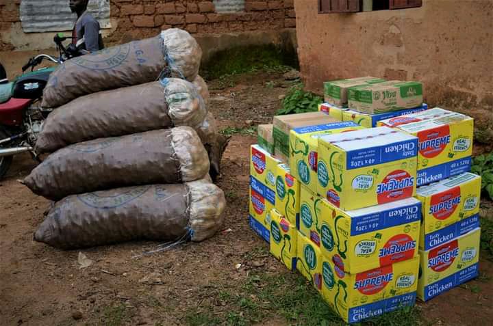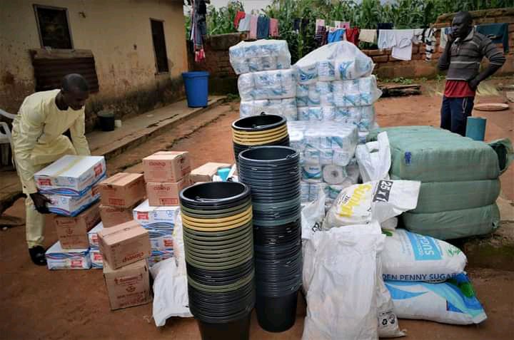 The items donated were; 15 bags of Garri, 10 bags of maize, 7 bags of rice, 5 bags of beans, 5 Jerry Cans of palm oil, 10 bags of Irish Potatoes, 1 bale of blankets containing 65 pieces, 1 bale of mats containing 50 pieces, 20 rolls of soft tissue papers, 2 bags of Sugar, 10 cartons of bathing soaps, 5 cartons of washing soaps, 10 bags of detergents, 10 cartons of toothpaste, 4 cartons of big Vaseline, 25 cartons of supreme noodles, 10 dozens of buckets and 10 dozens of cups.