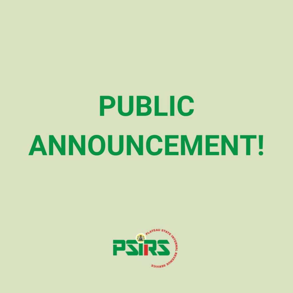 Taxpayers are to note that the self-assessment option is available on the new Plateau Integrated Revenue Administration System (PIRAS). Visit: registration.psirs.gov.ng to register, self-assess, make payment, save and print automated receipts.