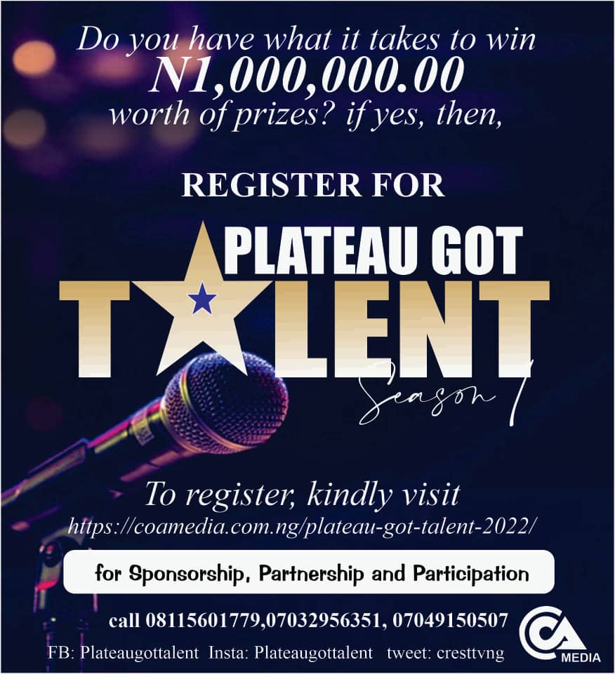 FILL THE FORM WITH YOUR CORRECT DETAILS: https://coamedia.com.ng/plateau-got-talent-2022/